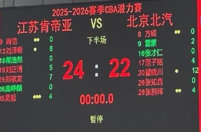北京队潜力赛首发名单为:方硕、雷蒙、张才仁、范子铭、翟晓川...
